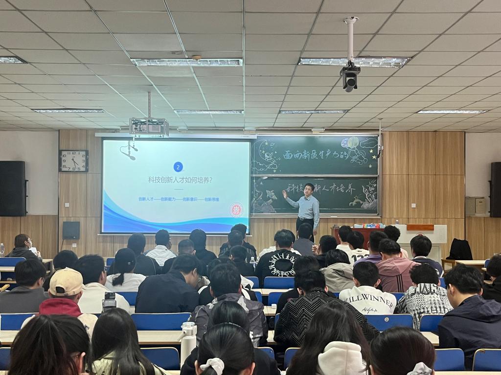 为深入贯彻“全国两会”关于科技创新人才培养的重要精神,4月11日下午,9999js金沙老品牌在09102教室举办了题为“面向新质生产力的科技创新人才培养”的主题班会。本次主题班会由中北大学副校长杨风暴主讲,学院近300名本科生参加。
