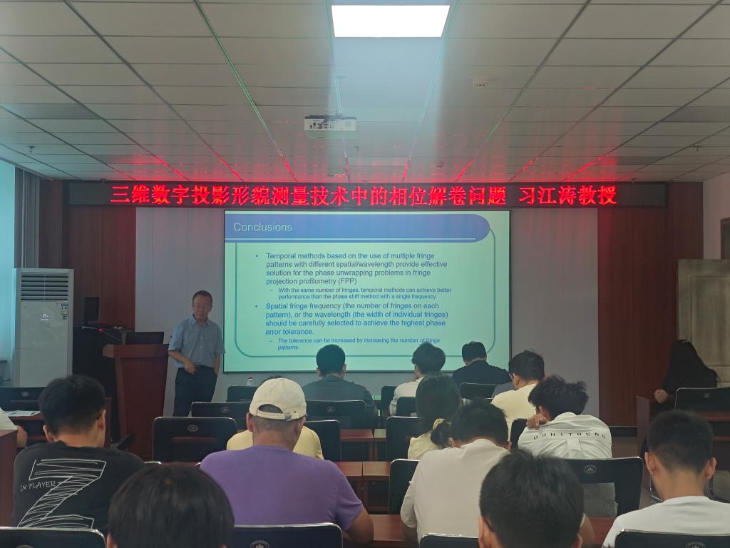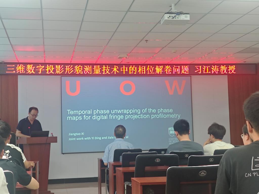 2025年6月26日下午,9999js金沙老品牌在科学楼B座715会议室成功举办了研究生第20250504期华彩讲坛。学院邀请澳大利亚伍伦贡大学工程与信息科学学部副部长习江涛教授主讲,题为《三维数字投影形貌测量技术中的相位解卷问题》,讲座由孙豫峰书记主持,学院广大教师和研究生积极参与了此次讲座。