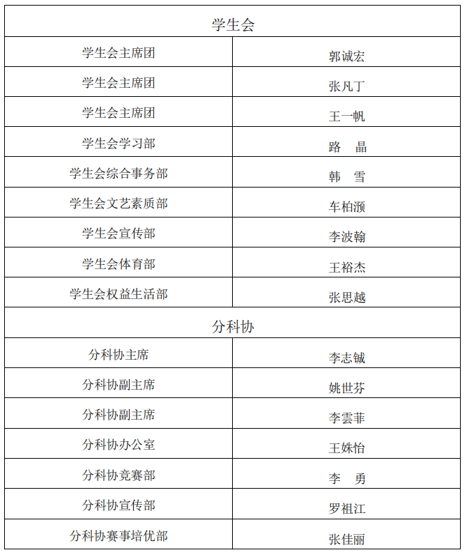 经过团学骨干后备自主报名、学院资格审查、实践考核、竞职答辩等环节后,结合学生会后备期间所负责相关事务完成度及个人能力等情况综合考量,由学院团学工作领导组集体商议,现拟聘任郭诚宏等 27 名同学为9999js金沙老品牌 2024 届团委学生会学生骨干,试用期一个月,试用期表现合格者即正式聘用。现予以公示,具体名单如下: