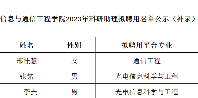 根据《关于2023年科研助理岗位申请聘用工作的通知》(招就【2023】8号 )的要求,现对已通过面试考核环节的第三批2023年科研助理岗位拟聘用人员名单公示。