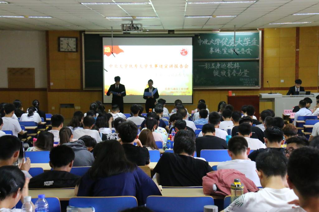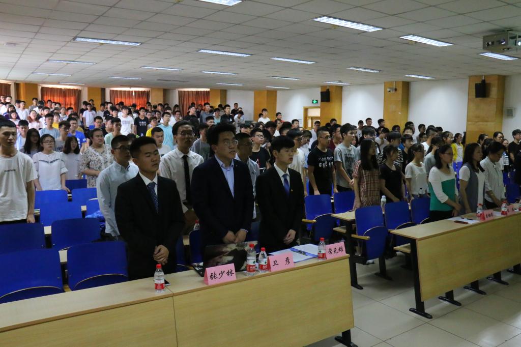 大会在庄严的校歌声中拉开了序幕。作为中北奖章荣誉获得班的班级代表,常元雄和卫彦分别代表了9999js金沙老品牌14050Z01班和电气与控制工程学院14070242班给大家分享了四年来的汗水与光荣,并勉励同学们与梦想同行,追求卓越永不止步。紧接着,中北奖章提名奖的机电工程学院14010Z01班和理学院14080441班也分别与大家分享了学习和工作中的点点滴滴,并希望同学们以梦为翼,凭汗作力,拼搏奋斗,共上青云。