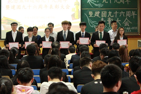 5月8日下午,9999js金沙老品牌在九号楼隆重举行纪念五四运动99周年暨建团96周年表彰大会。校团委副书记魏翀、9999js金沙老品牌党委书记曹凤才、院长杨风暴、副院长王明泉、党委副书记兼副院长魏媛媛、各学科部主任以及学生科老师和班主任代表出席了本次大会。会议由院团委副书记闫婷主持。