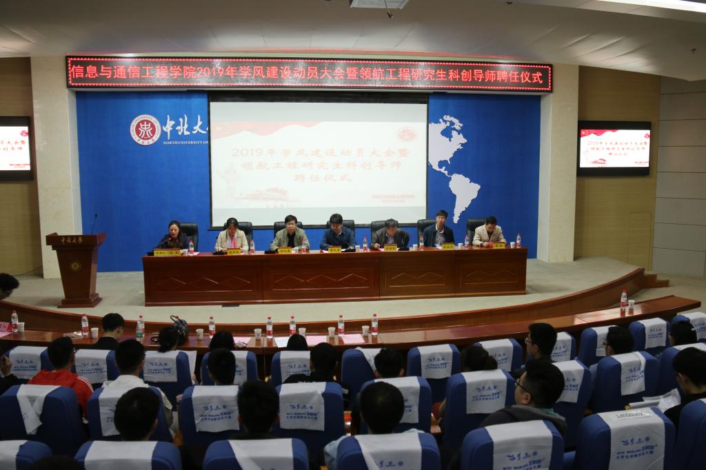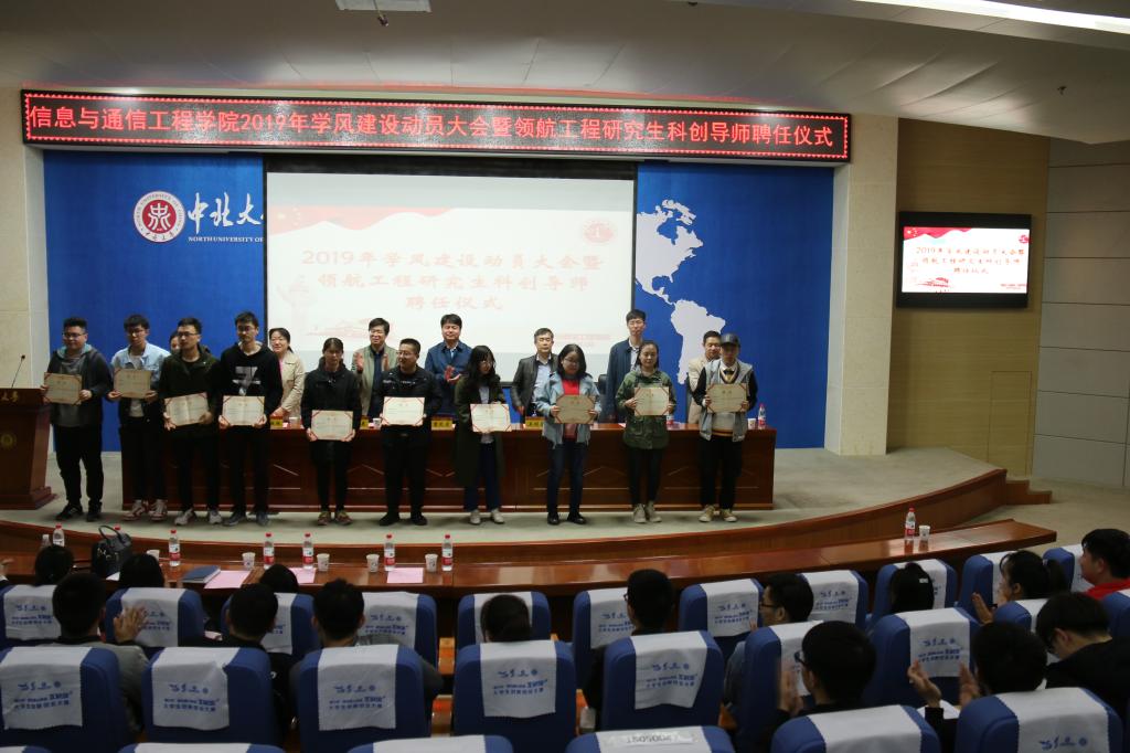 为扎实推进“改革创新,奋发有为”大讨论,进一步巩固学院学风建设工作成果,促进优秀学生、教师及优良班集体榜样示范引领作用,4月2日下午16:009999js金沙老品牌2019年学风建设动员大会暨领航工程研究生科创导师聘任仪式在瑾瑜国际会议中心隆重举行。出席此次大会的领导有学院党委书记曹凤才、院长杨风暴、科研副院长王明泉、院党委副书记兼副院长魏媛媛、信息与通信工程学科管理部主任陈友兴、生物医学工程学科管理部主任张权,学院全体辅导员和部分班主任代表也参加了会议。