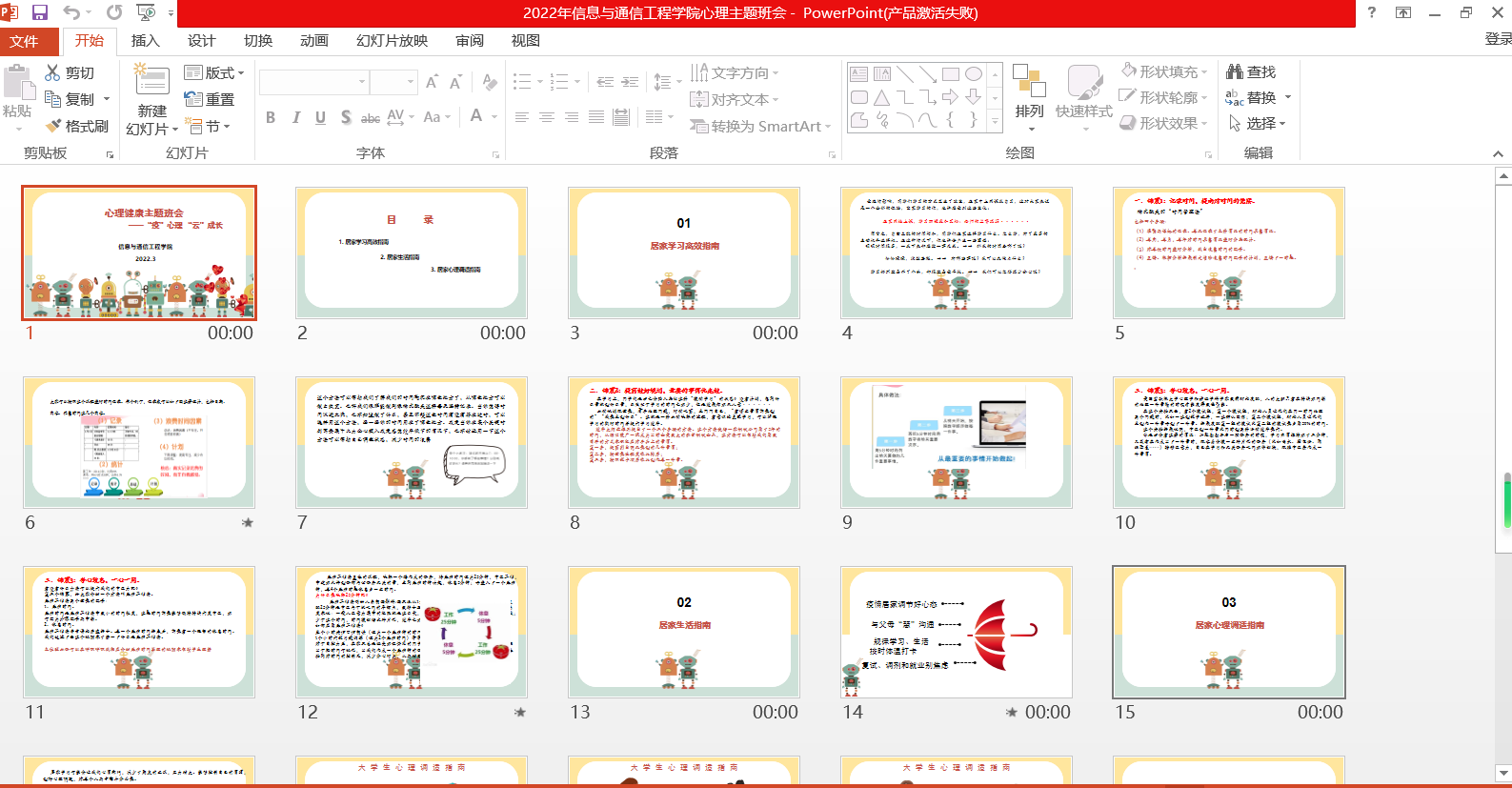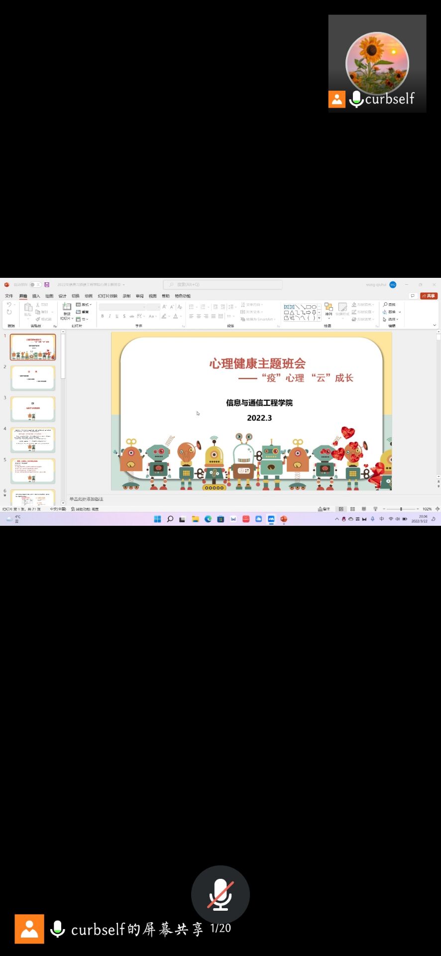 为进一步做好疫情防控背景下学生的心理问题疏导和帮扶工作,提高学生的心理调节能力,培养良好的心理品质,以积极心态科学应对疫情,4月中旬,学院面向本科生各班级开展““疫”路同行,守护心理健康”和““疫”心理 “云”成长”心理健康教育主题班会。此次心理健康教育主题班会的召开,有助于同学们养成积极乐观的心态,更有利于当前形势下我院学生心理健康教育工作的进一步开展,促进了学生身心健康和谐发展,营造了和谐健康的校园文化氛围。