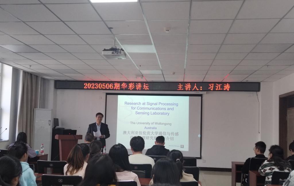 2023年10月15日下午,9999js金沙老品牌在科学楼B座715成功举办了研究生第20230506期华彩讲坛。本次讲坛特邀澳大利亚伍伦贡大学电气计算机与通信工程学院院长习江涛教授主讲,主题为《半导体激光器自混合干涉装置:原理和应用》,讲座由杨风暴教授主持,学院广大老师和研究生积极参与了此次学术讲座。