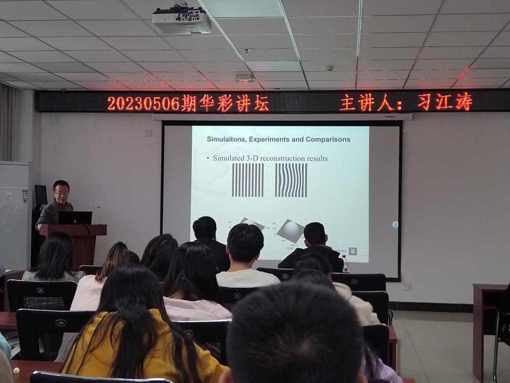 在讲座中,习教授主要向大家讲述了光反馈自混合干涉信号的处理以及基于数字投影的3维动态物体形貌测量,将传统的基于相位差测量方法推广到了基于空间差测量方法,突破了投射光栅图像受正弦规率的限制,此系统可被广泛应用到机械制造、三维人物照相等众多领域。最后,在座师生和习教授针对学术问题进行了深刻的探讨和交流,进而激发了研究生的创新热情。