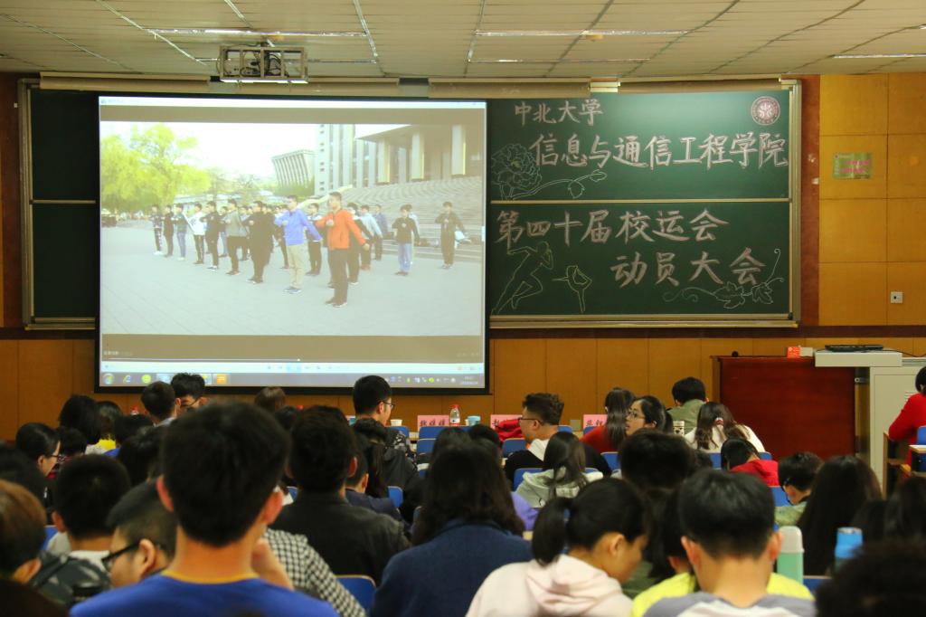 在宣布信息与通信工程学校第四十届动员大会的正式开始后,主持人介绍了到场嘉宾,并由全体奏唱了中北大学校歌。然后一起观看了激动人心的训练风采视频。
