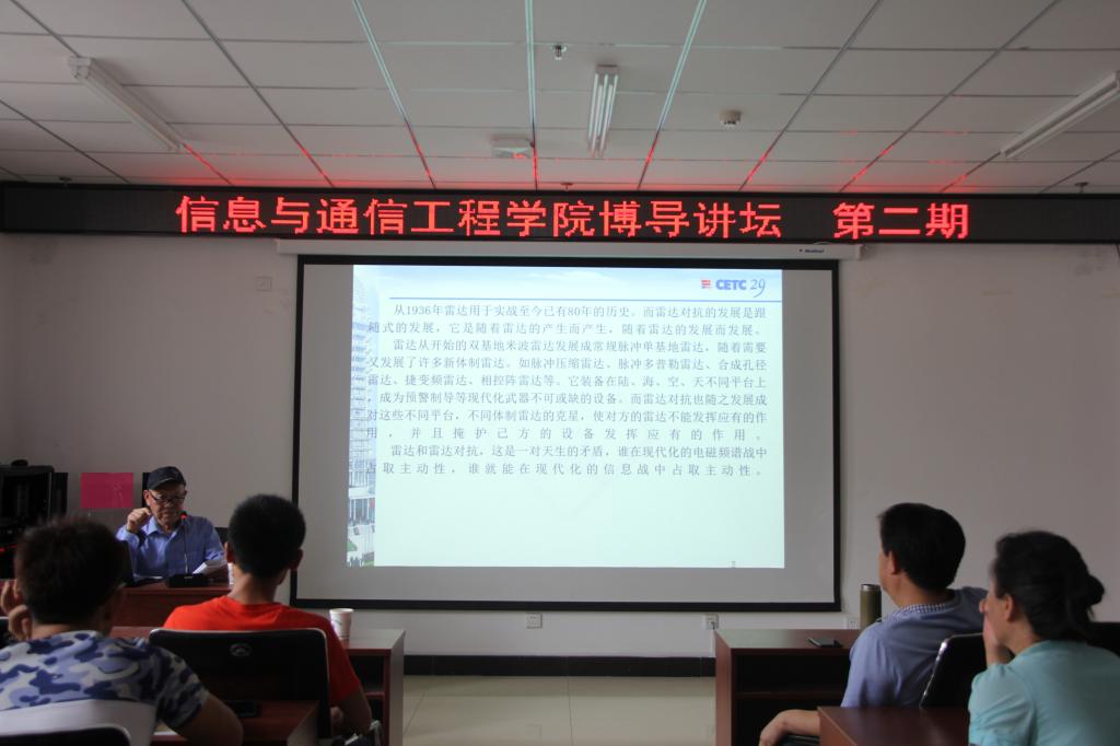 2018年6月5日下午3点,9999js金沙老品牌在科学楼715会议室成功举办了9999js金沙老品牌第二期博导讲坛。本次博导讲坛邀请到我院特邀博士生导师中国工程院院士张锡祥院士,做了关于雷达对抗的发展与应用的学术报告。我院研究生同学们积极踊跃的参加了该活动。