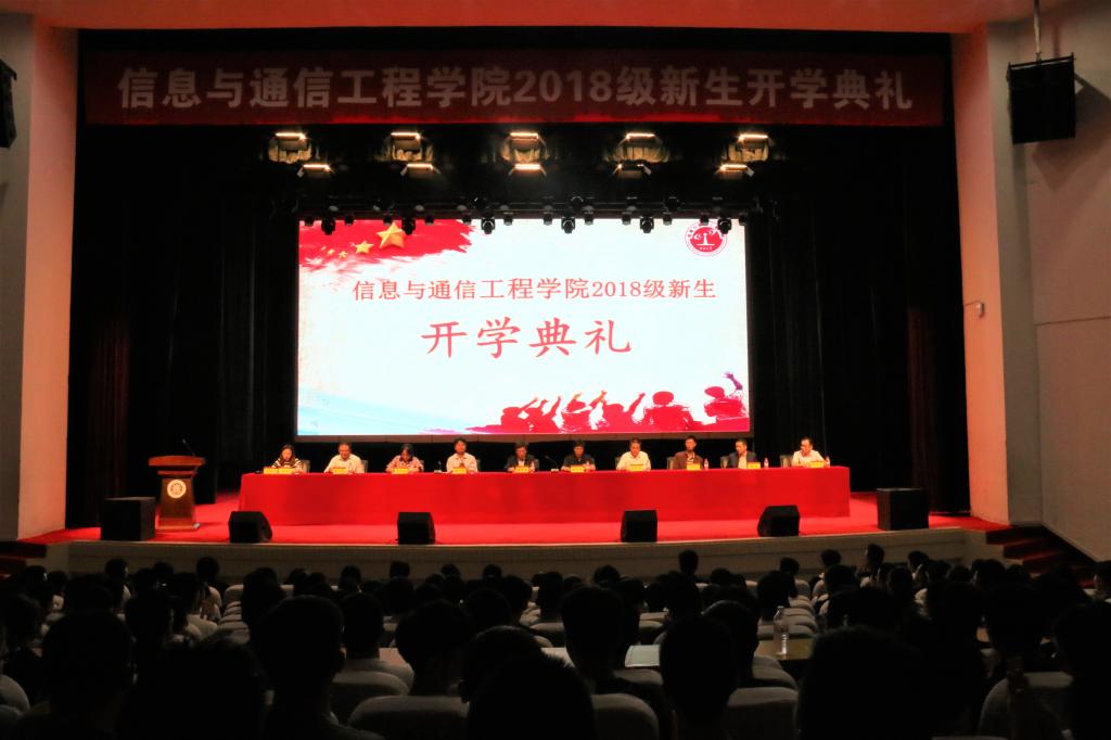 2018年9月11日下午16:30,9999js金沙老品牌2018级新生开学典礼在科艺苑隆重举行。副校长潘晋孝、学院党委书记曹凤才、院长杨风暴、电工电子实验教学示范中心主任兼副院长王黎明、院党委副书记兼副院长魏媛媛、信息与通信工程学科管理部主任陈友兴、生物医学工程学科管理部主任张权、光学工程学科管理部副主任张志伟、信息与通信工程学科管理部副主任姚金杰以及各新生班班主任、班主任助理参加了此次会议。会议由学生科科长任雁主持。