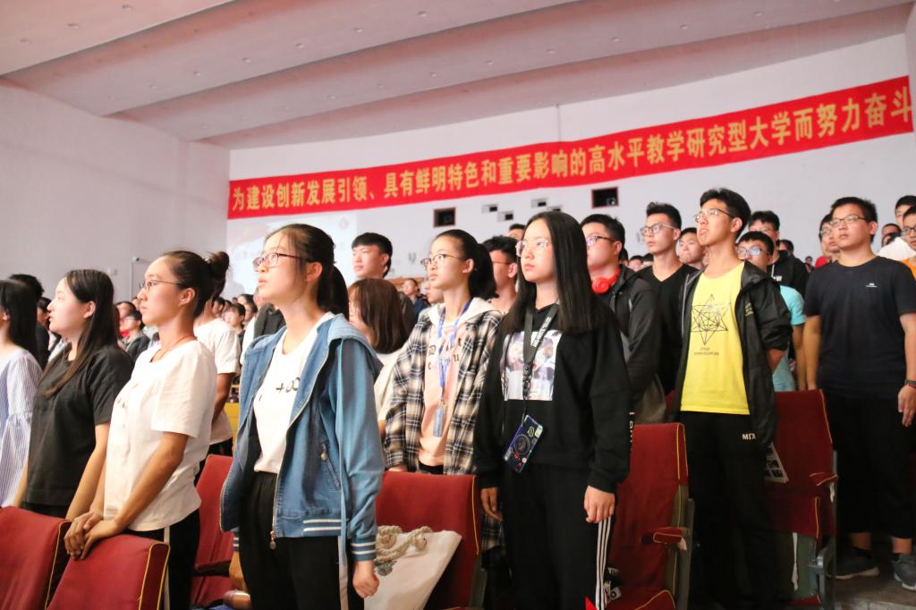 庄严而肃穆的国歌声后,学院党委书记曹凤才致辞,他对新同学的到来表示热烈欢迎,并对2018级新生提出三点希望:一是希望同学们能够确立目标,修身立德、立志成才;二是希望同学们能够自强不息,致知于行,大胆创新:三是希望同学们积极参加社团活动,锻炼自己的人际交往能力。
