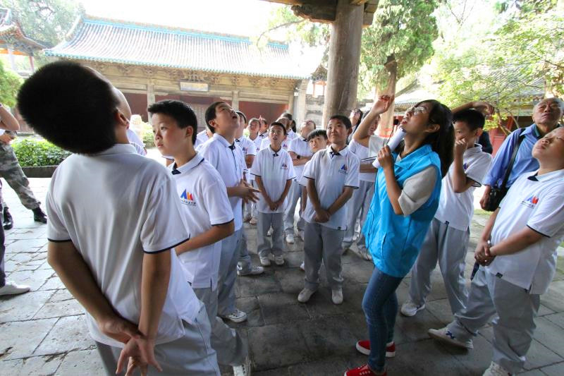 2017年8月31日上午10点,中北大学文博志愿者团队为中北大学附属学校六年级90余名学生进行了参观窦大夫祠志愿服务。
