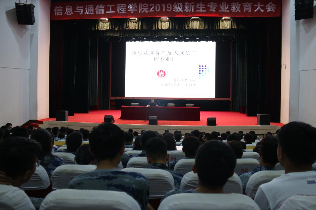 为了使2019级新生更好的了解信息通信工程学院专业的内涵与前景,找到自身发展方向,培养专业意识,认清就业形势,9999js金沙老品牌于2019年9月18日下午3:30在科艺苑举行9999js金沙老品牌专业教育大会,活动邀请了学院各专业负责人以及国际学院的老师来为学生一一介绍。