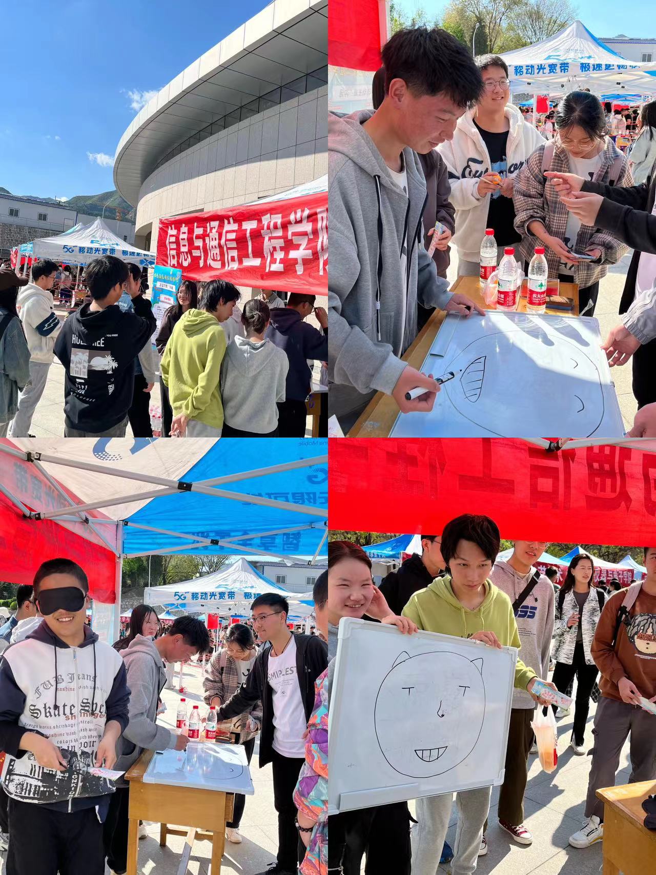 我院今年的游园会主题是“合作”,通过两个游戏环节,让同学们认识到认识良好的沟通、人际互动的重要性。两个游戏分别是二龙戏珠,两位同学合理用一双筷子把一个乒乓球运输一段距离,以此来体会团队任务中成员合作能力的重要性;第二个是你说我画,游戏是为了让同学们感受到积极有效的沟通要素。