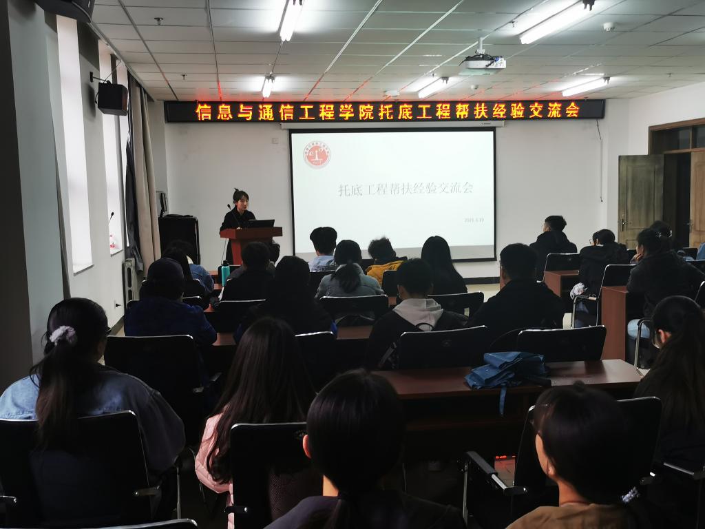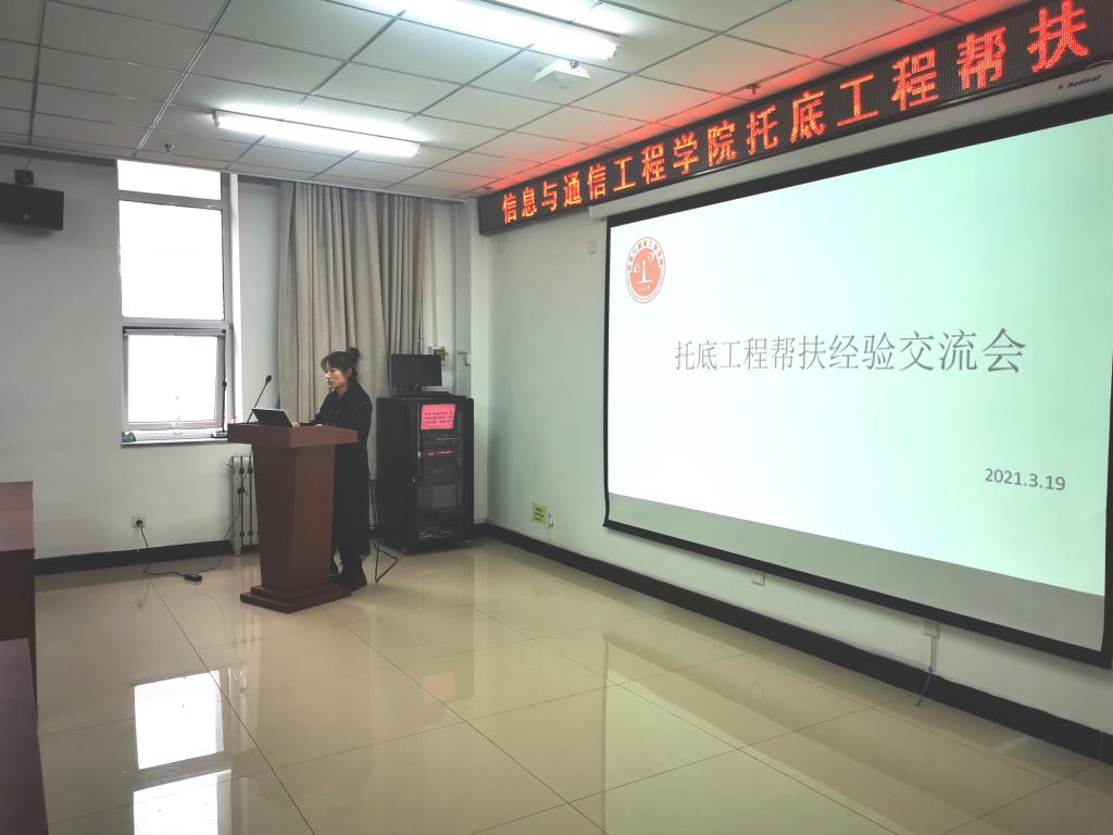 2021年3月19日中午,9999js金沙老品牌在科学楼B座715开展托底工程帮扶经验交流会,参加此次培训的是我院各年级各班团支书以及心理联络员。
