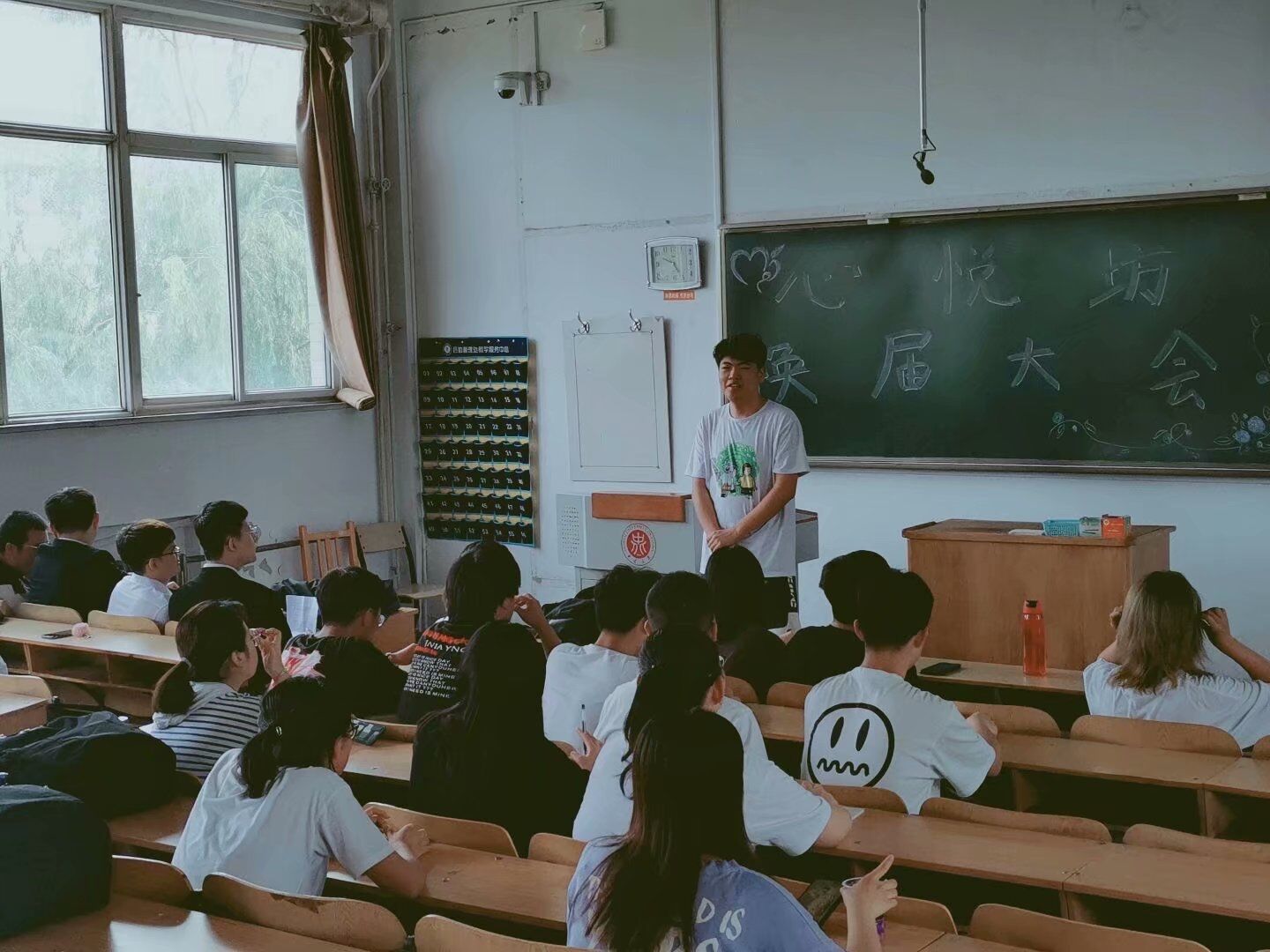 我院心悦坊心理辅导站于2021年6月15日下午3点在10号楼进行了换届答辩大会,心悦坊心理辅导站老师王秋惠、站长及各部部长、各部干事出席了本次活动。