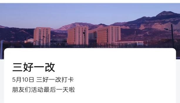 适逢‘5·25’大学生心理健康节,我院心理辅导站在此面向全体同学推出“每日三好一改”打卡活动。引导我院学生积极乐观的面对生活,发现生活中的美好瞬间,分享自己的快乐来感化身边人,时间于5月4日至5月10日。
