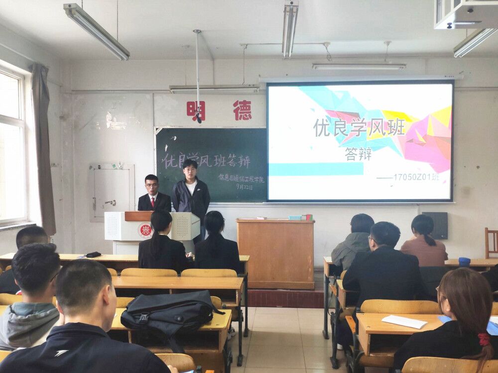 为进一步加强我院的学风建设,全面激发学生自觉学习、奋发进取、立志成才的积极性,不断增强学生成长成才的动力,提高人才培养质量,2020年9月22日下午4点半,我院在10206Z教室举办了优良学风班答辩活动,学生科张永玲老师、邢杰老师、孟伟老师出席答辩会并担任评委。全院三个年级共有19个班级参与答辩。