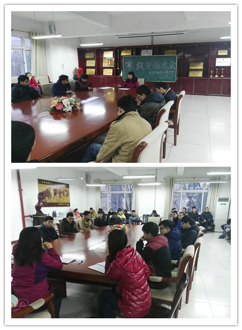 2016年1月26日下午5点,学院在院楼会议室召开寒假留宿学生的安全会议。参加会议的有假期勤工助学以及参加2016年美国数学建模大赛的同学。假期,学院统一管理寒假留宿的学生,在学生中建立临时的党团支部,关注每一名假期在校的学生,保证在校的同学度过一个安全的假期。