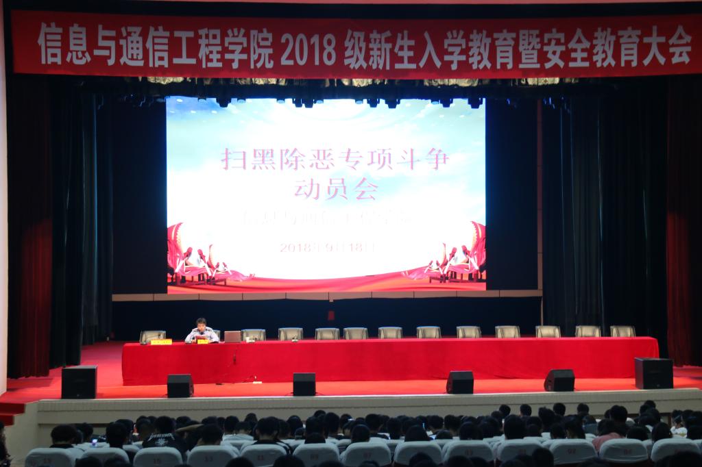 为使新生更好适应大学生活,提高新生安全防范意识,2018年9月18日下午16:30,9999js金沙老品牌2018级新生入学教育暨安全教育大会在科艺苑成功举办。大会邀请到保卫处监控中心主任李雁峰老师、尖草坪公安分局上兰派出所王伟民警、国际交流合作处国际交流办公室樊鹏老师为新生进行专题讲座。会议由学生科科长任雁老师主持。