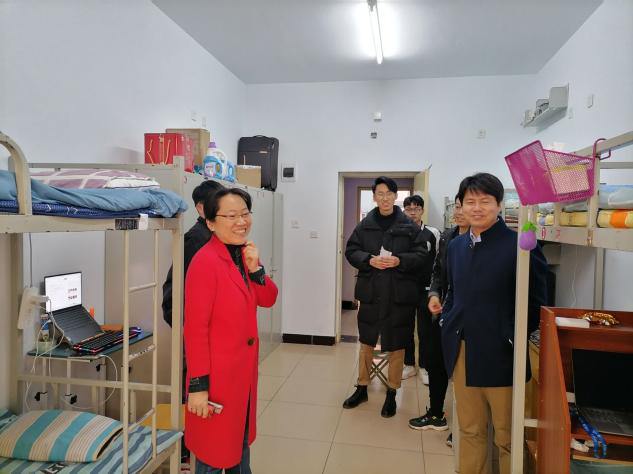 走访中,曹凤才书记亲切地与同学们交谈,贴心地询问同学们的生活情况,细致地了解各宿舍的卫生值日情况。曹书记强调宿舍是同学们每天生活休息的地方,宿舍卫生环境非常重要,每个人都应把宿舍当做自己的家,只有保持干净整洁的宿舍环境,才能更好地学习生活。曹书记还讲到,宿舍安全也是重中之重,严禁宿舍内使用违规电器,严禁在宿舍内抽烟,安全重于泰山,要时时刻刻把安全放在第一位。