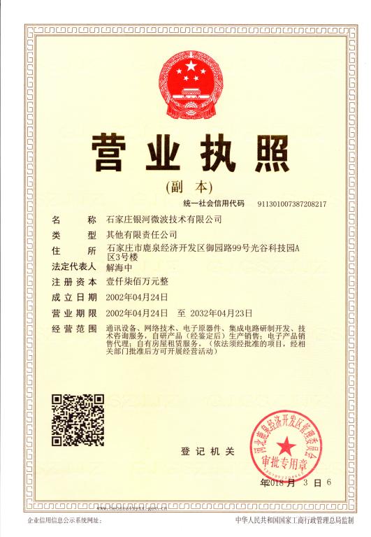 石家庄银河微波技术有限公司成立于2002年,是河北省科技厅认定的高新技术企业。2015年9月,与北京北斗星通导航技术股份有限公司(股票代码:002151)战略重组,目前成为旗下控股公司。银河微波是专门从事开发、设计、生产各种用于航空、航天及其他微波通信、雷达领域中的微波器件、微波组件的高新技术企业。
