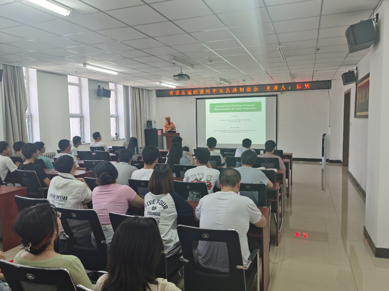 2023年6月20日下午,学院特邀加拿大麦克马斯特大学电气与计算机工程系陈隽教授在科学楼B座715学术报告厅举办了研究生第20230505期华彩讲坛,主题为:有损压缩的通用率失真感知表示。学院广大青年教师和研究生都积极参与了此次学术交流会。