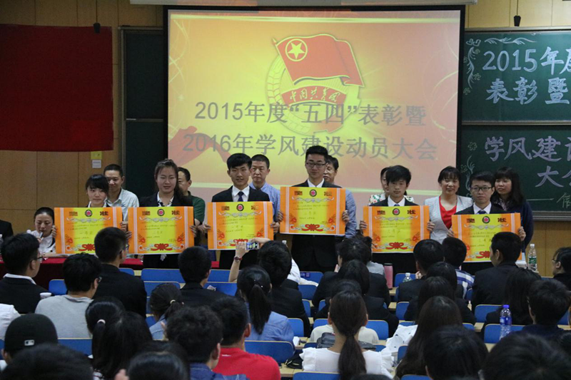会议伊始,全体起立,团歌响起。校团委副书记魏翀教授致辞,宣布大会的召开。随后我院展示了2015年度团委工作的视频,并由学院团委副书记魏媛媛教授总结学院2015年度团学工作。之后,张权教授宣读了院级团内先进集体和优秀个人的表彰决定;姚爱琴教授宣读了2015学年国家奖学金、中北奖章、校长奖章、优良学风班的表彰决定。在宣读完毕后,获奖代表依次有序的上台领奖。