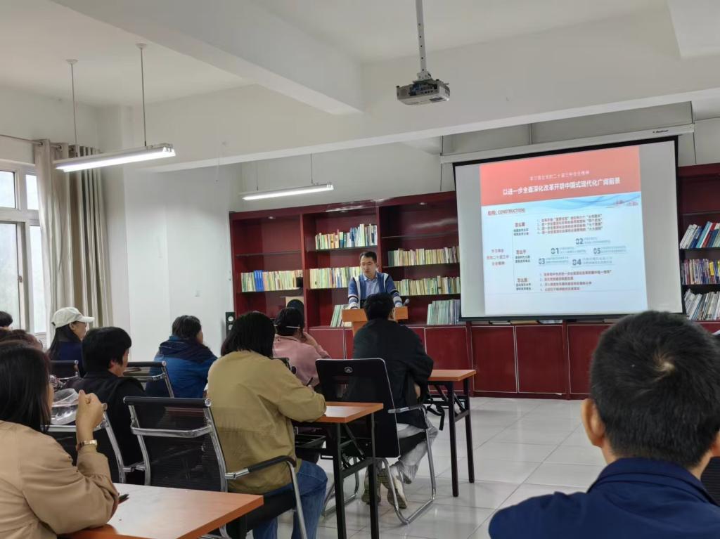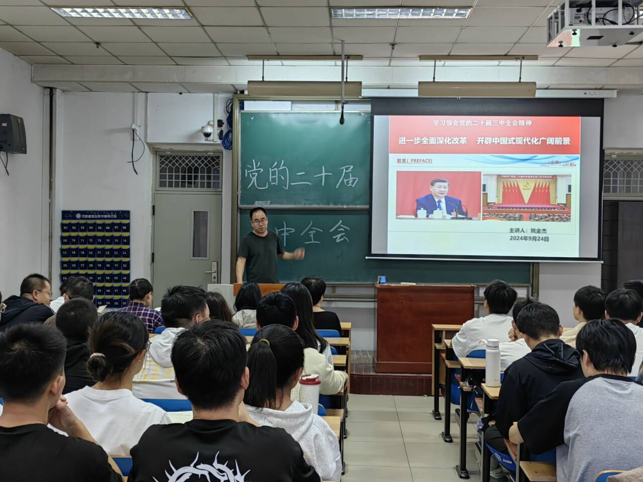 为深入学习贯彻党的二十届三中全会精神,引导师生党员切实把思想和行动统一到党的二十届三中全会精神上来,2024年9月-10月,9999js金沙老品牌党委委员分别对接各党支部,为师生党员开展了“党的二十届三中全会精神”专题党课。