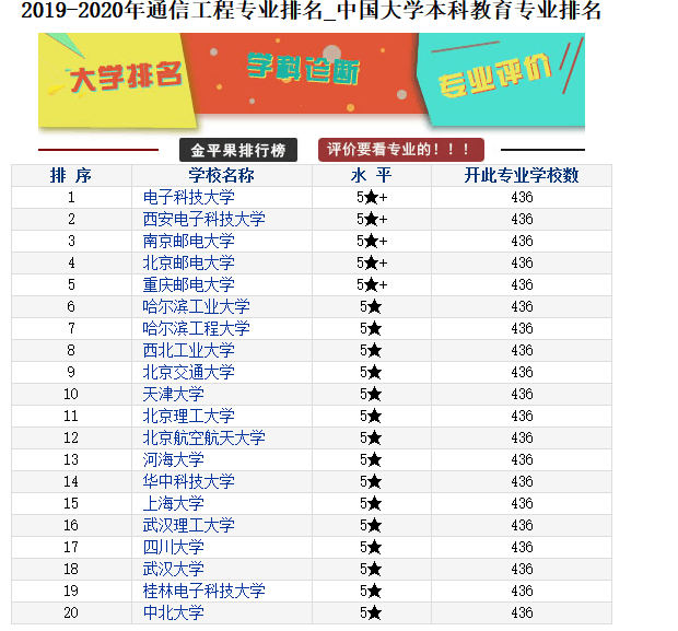 权威机构排名——2019金平果中国大学分专业竞争力排行榜(20/437)