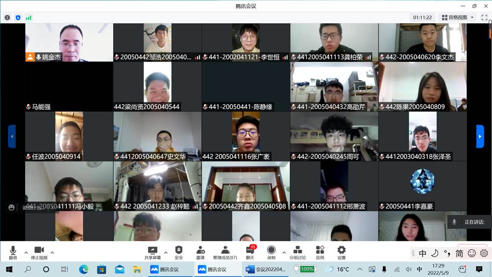 针对2021级专业学生,专业负责人姚金杰以“认清形势 奋力争先”为题,重点讲解国家发展、疫情防控、考研就业、专业认证、学分绩点等形势方面内容,鼓励大家认清形势,积极转变观念,努力适应线上教学,注重身体锻炼、价值观培养、学习方法、沟通交流、团队合作等环节,以时不我待的紧迫感,奋力争先,不负青春韶华,努力做社会主义合格青年!