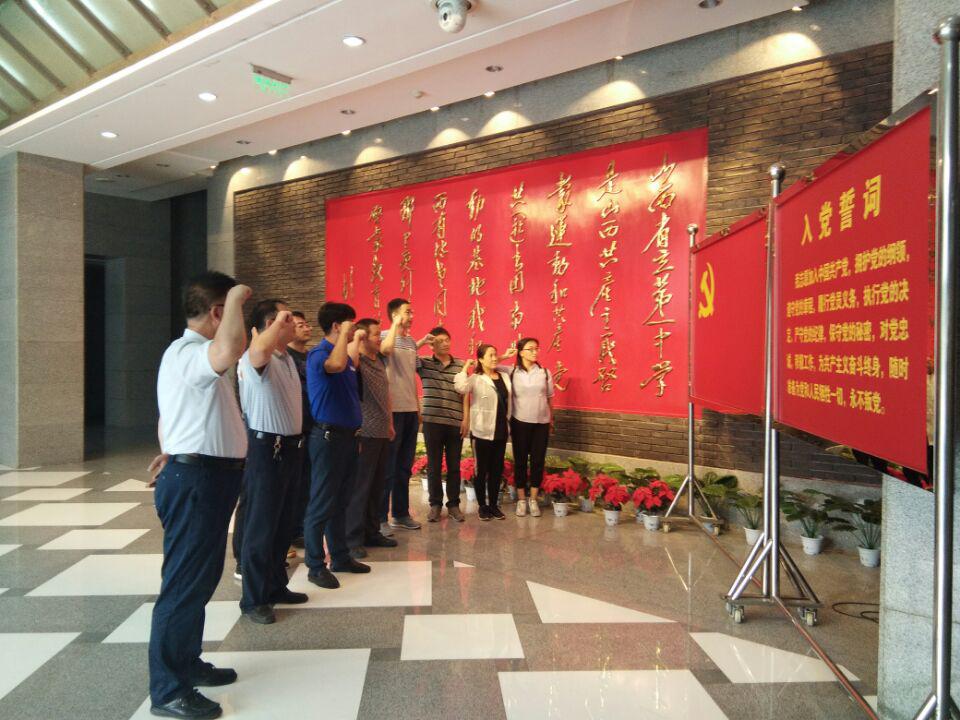 参观展览前,全体党员面对党旗,重温入党誓词。