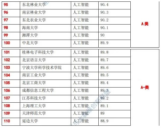 人工智能专业获评全国高校人工智能与大数据创新联盟教育教学综合实力排行榜A类专业