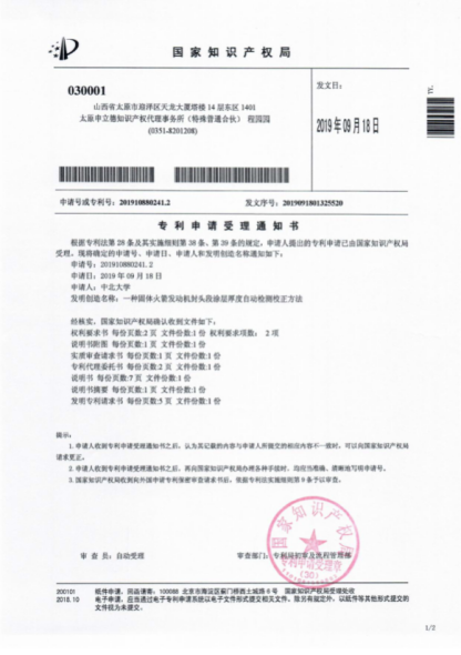 (5)一种固体火箭发动机直筒段涂层厚度自动检测校正方法, 201910880225.3