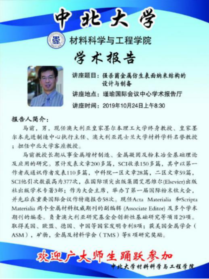 (1)澳大利亚皇家墨尔本理工大学大学马前教授来访讲学